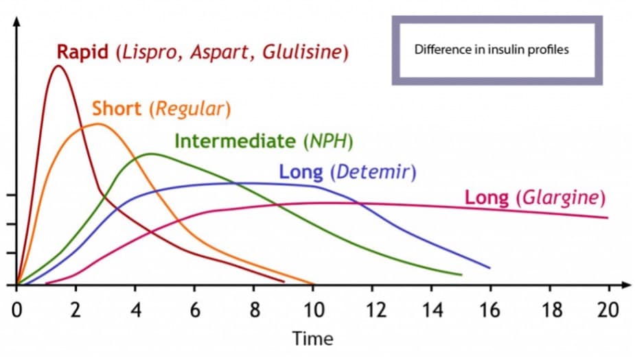 werkingsprofielen van maaltijd insulines - kortwerkende - en langwerkende insulines